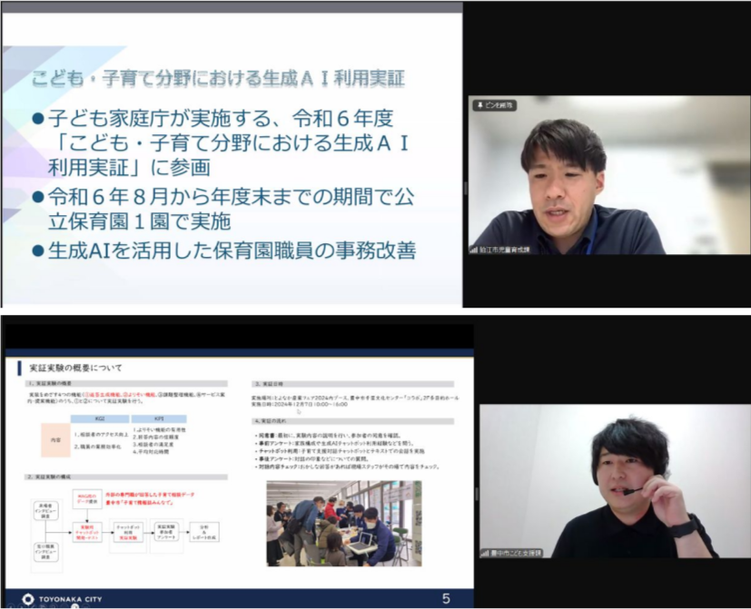 こどもDX推進協会は、2025年8月27日(水)に「第4回オンライン勉強会」を開催いたしました。本勉強会では、東京都狛江市 児童育成課 塚脇様、大阪府豊中市 こども支援課 篠木様を講師としてお招きし、「こども・子育て分野における生成AIの利活用事例紹介」をテーマに実施しました。